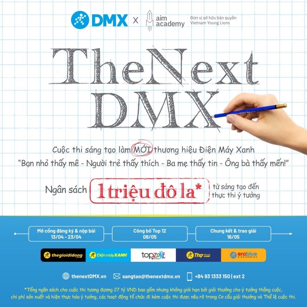 Đặc biệt, nhà bán lẻ cũng thể hiện cam kết thực hiện cuộc thi một cách nghiêm túc và chuyên nghiệp bằng cách bắt tay đồng tổ chức cùng AIM Academy, đại diện chính thức của Cannes Lions (được coi là giải Oscar của giới quảng cáo sáng tạo) tại Việt Nam, và là đơn vị tổ chức độc quyền cuộc thi Vietnam Young Lions. AIM là đơn vị tổ chức dày dạn kinh nghiệm và có tiếng trong cộng đồng sáng tạo Việt Nam với việc tổ chức thành công cuộc thi Vietnam Young Lions trong suốt 10 năm qua. Không chỉ thực hiện cuộc thi, DMX cũng tài trợ, đồng hành cùng cộng đồng sáng tạo Việt Nam thông qua Cam kết hỗ trợ phát triển tài năng sáng tạo của AIM. Sự hợp tác này biến "The Next DMX" thành một sân chơi sáng tạo chuyên nghiệp, nơi các ý tưởng đột phá được trân trọng và đánh giá đúng mực.